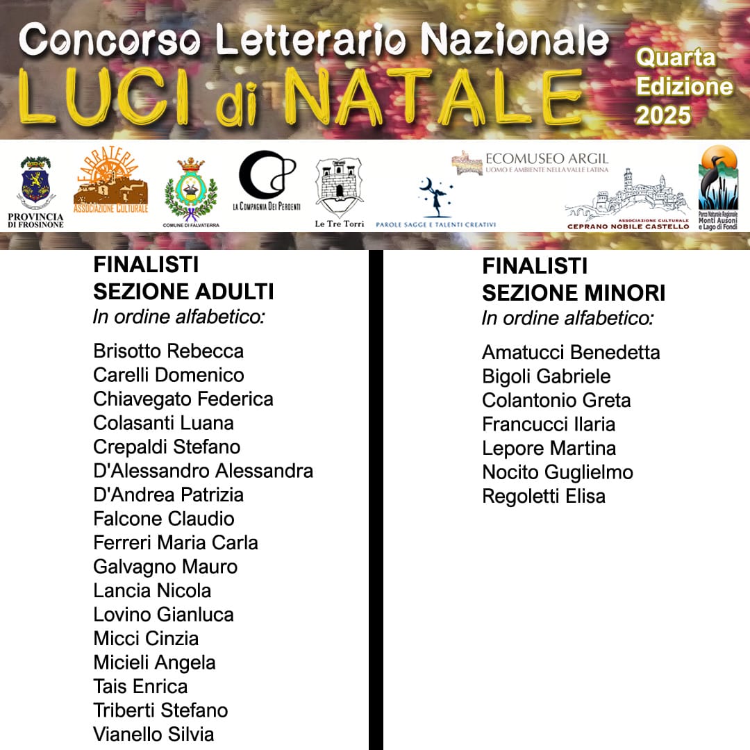 Su iniziativa de La Compagnia Dei Perdenti – operante nel settore della promozione artistica, teatrale e cinematografica, dell'Associazione Culturale Fabrateria – impegnata da anni nella valorizzazione del patrimonio storico del territorio e in attività artistiche e culturali, con il patrocinio del Comune di Falvaterra e in collaborazione con l'Associazione Culturale Le Tre Torri, l'Associazione Ecomuseo Argil, l'AssociazioneCulturale Parole Sagge e Talenti Creativi e l'Associazione Culturale Ceprano Nobile Castello, si bandisce la IV Edizione del Concorso Letterario Nazionale LUCI DI NATALE, per racconti inediti in lingua italiana.